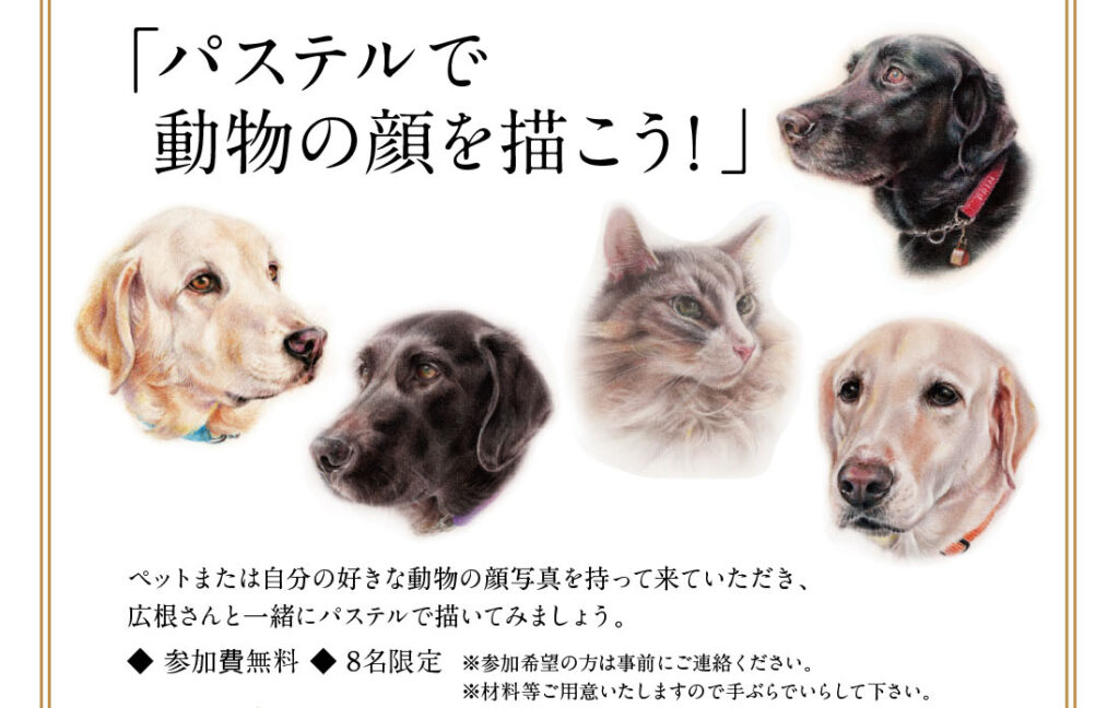 【銀座 森の時間】3月2日(月)16:00〜17:00 広根良子さん ワークショップ 「パステルで動物の顔を描こう!」 ペットまたは自分の好きな動物の顔写真を持って来ていただき、広根さんと一緒にパステ…