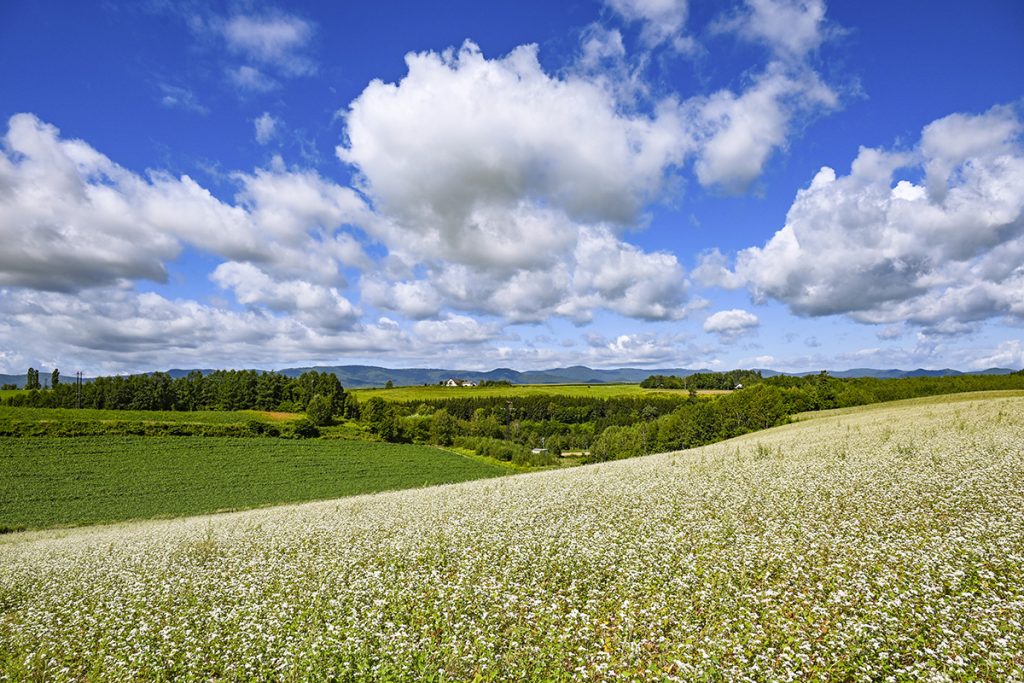 美瑛の美しい丘は、火山活動によって積もった火砕流の堆積物が、放射状に走った川の流れで削られ、長い年月をかけて形成されました。水はけが良くソバ栽培にとって最高のロケーションです。 夏は寒暖差が激しく、収穫期の蕎麦にぐっと旨味を閉じ込めます。美瑛の丘で育った「新そば」をお楽しみください。