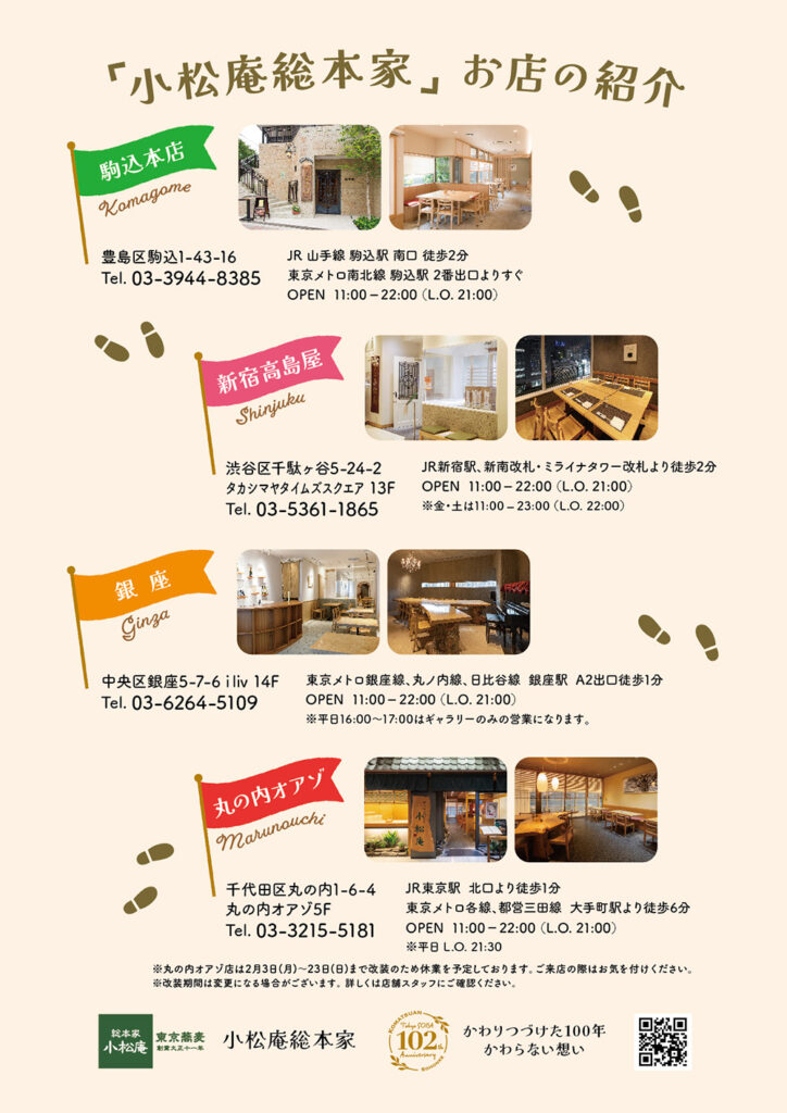 2025年 新春企画として、小松庵 お店巡り「鍋焼き蕎麦」食べ比べ スタンプラリーを開催中!